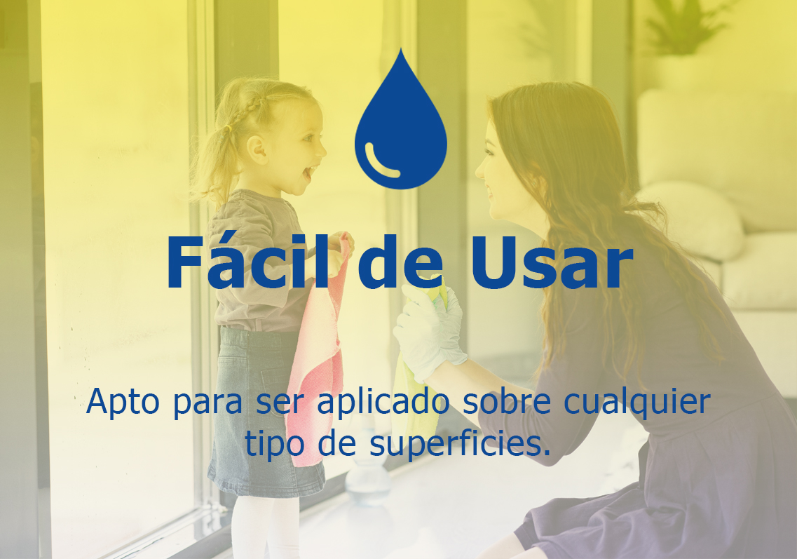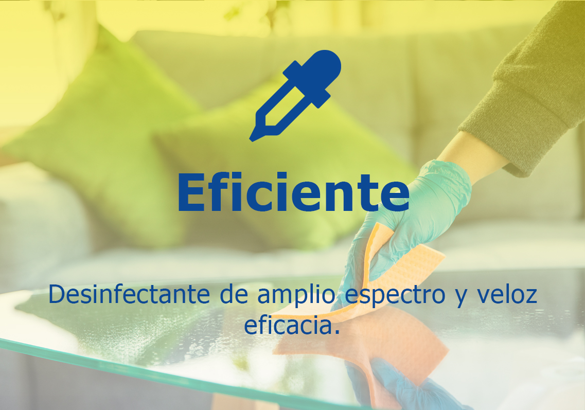 • Efectivo en pisos, paredes, muebles, vidrio y superficies de trabajo.